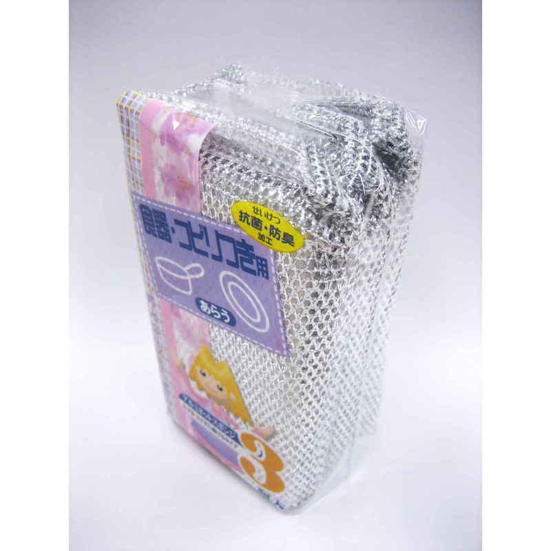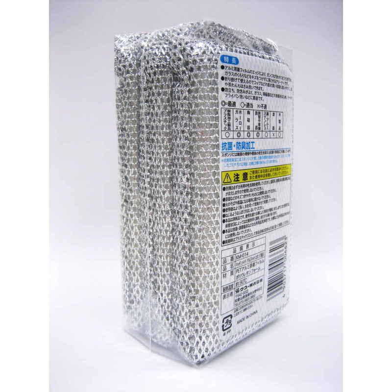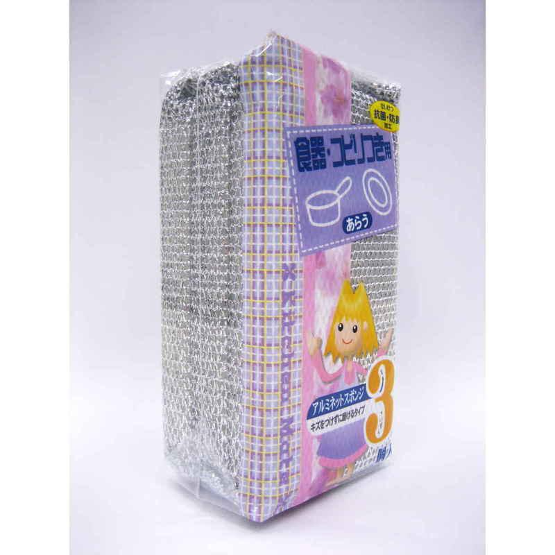 ガンコな汚れやこびりつき汚れ、ガラスの曇りなどをキズつけずに落とせるアルミスポンジ3個入りです。