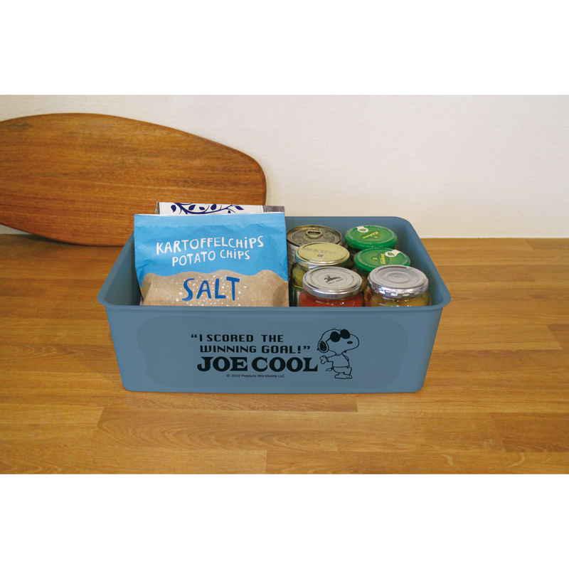 ジョー・クールのプリントがかわいい収納ボックス 別サイズとも積み重ねて便利に使える 水回りでも安心して使えるプラスチック製 キッチンやリビングの小物収納に おもちゃの収納にもぴったり
