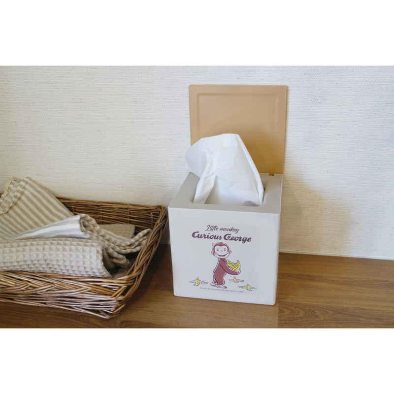フタ付きですっきりとインテリアに馴染む 箱型ティッシュケース おさるのジョージ 角型で場所をとらないデザイン どんな空間にもフィット ティッシュの詰め替えも簡単スムーズ