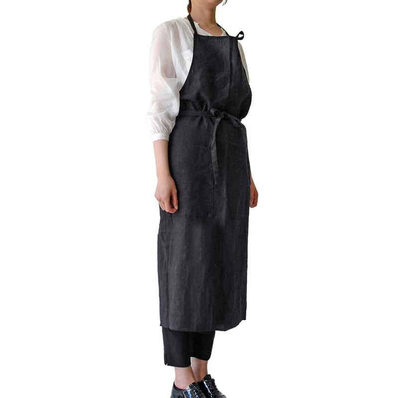 ウォッシュド加工を施した、柔らかな風合いのリネンエプロン