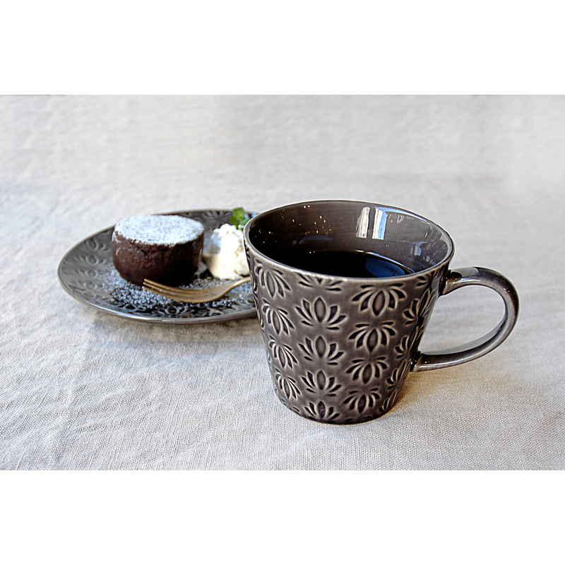 東洋の花(蓮)を西洋皿にデザインした、ちょっと魅惑的なマグカップです。