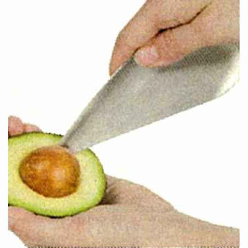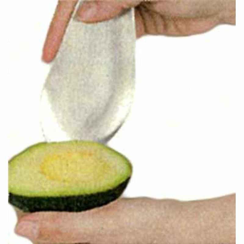 切る・種を取る・すくうがこれ1つで出来る 1・アボガドを半分に切ります 2・アボガドの種を取ります 3・アボガドの実をすくいます