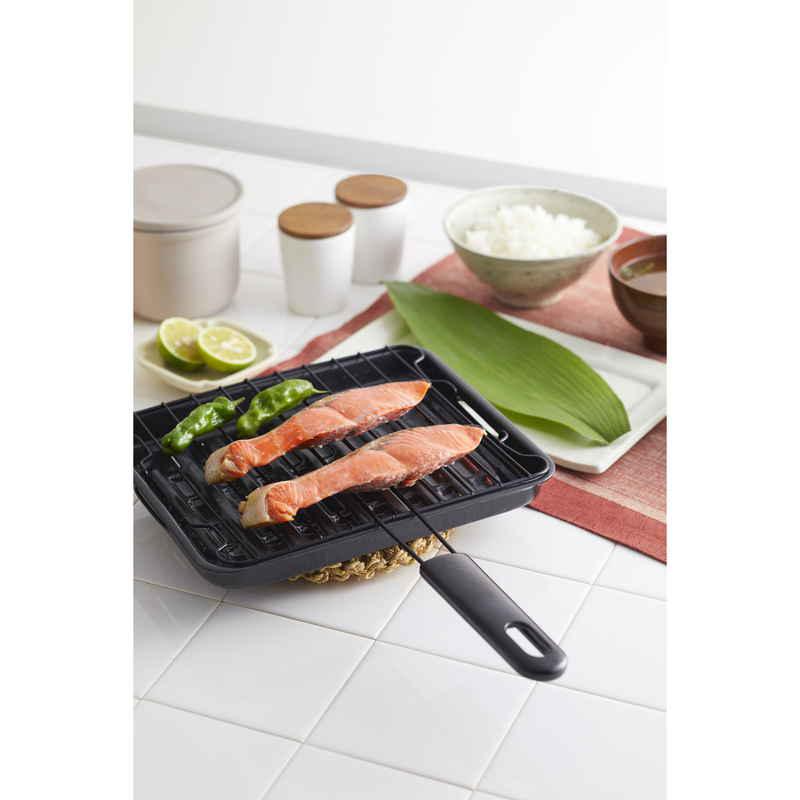 材質:本体/ホーロー加工鋼板 焼きアミ/鉄・ふっ素樹脂加工 ハンドル/フェノール樹脂