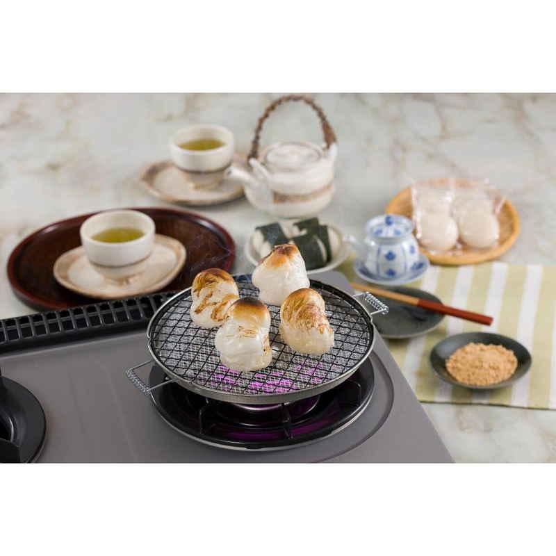 フッ素コートアミでおもちがこびりつきにくく、きれいに焼ける焼き網です。