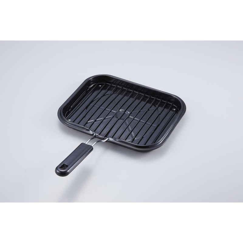材質:受皿/鋼板(ホーロー加工) 蓋/特殊加工鋼板(フッ素樹脂塗膜加工) 焼アミ/鉄線(フッ素樹脂塗膜加工) 取手・つまみ/フェノール樹脂