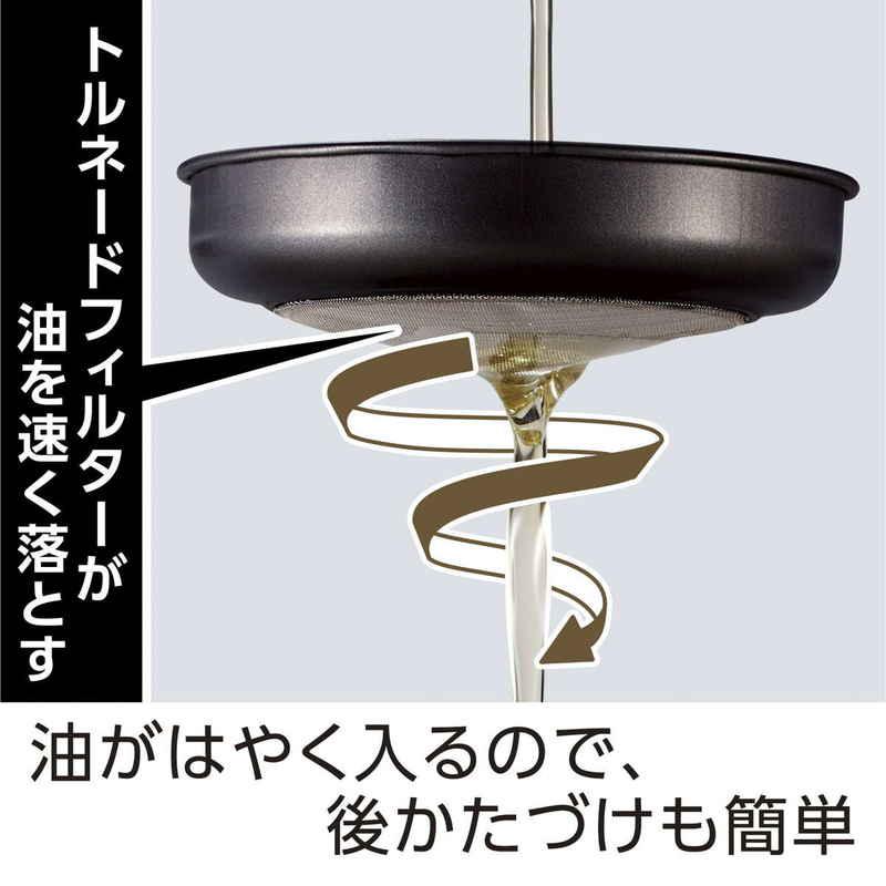 不純物を取り除いてくれるこし網には、油が早く落ちるトルネードフィルターを採用しています。