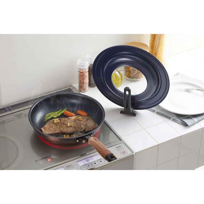 自立するスタンド式なので、料理中に蓋の置き場に困ることもありません。