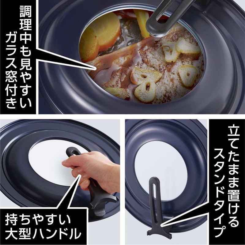 竹原製缶 フライパン 蓋 L 24〜28cm リグランテ スタンドパンカバー 日本製 ネイビー