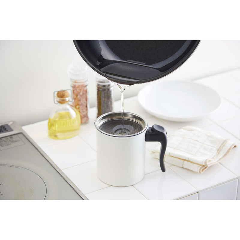 目の細かいステンレス製のこし網で、揚げかすをしっかりとキャッチします。