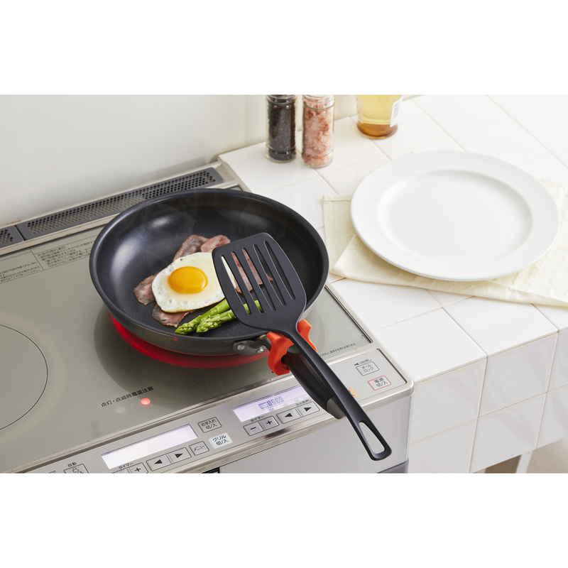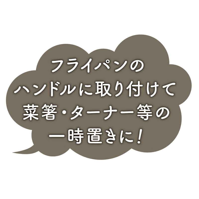 フライパンのハンドルに付けて、キッチンツールのちょい置きができる便利なアイテムです。
