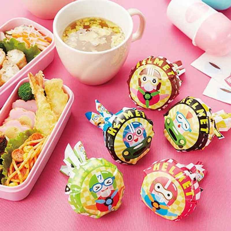キャラ弁作りにも便利です! シートの表面に点線で丸く、包んだ時に一口サイズのおにぎりができる目安が書かれているので使いやすい! 5柄各2枚入り(10枚入) ラップを止めるシールが付いています。