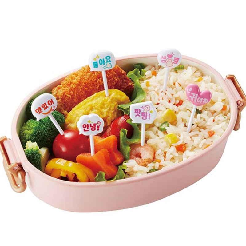 ハングル語のメッセージが付いた、華やかなお弁当用ピックです。