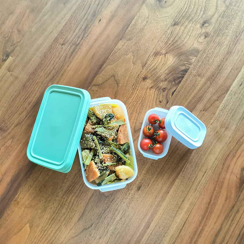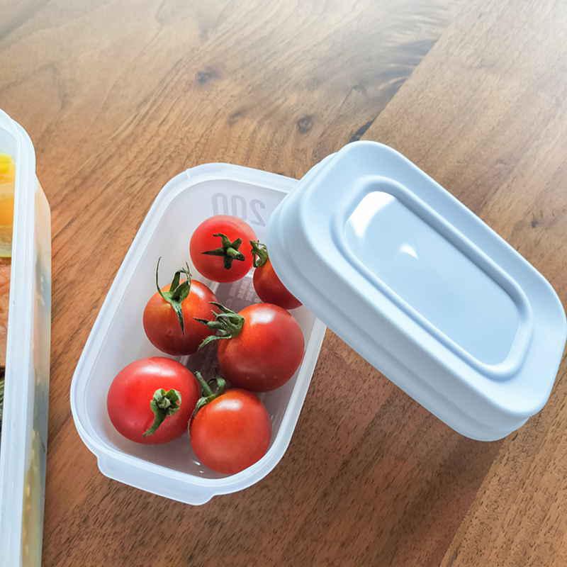 フタをしても本体の高さよりフタの天面が高い位置になるので、中身を押し潰しにくいです。
