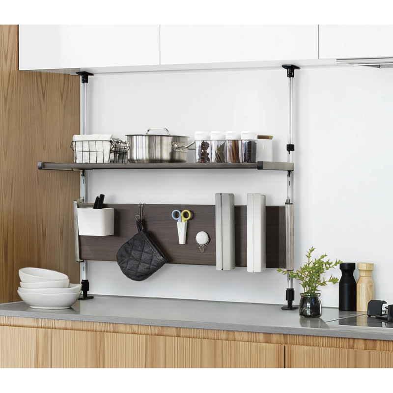 横掛けにすれば、上段には布巾やキッチンツール、下段には調理道具と、使いやすく分けて置くこともできます。