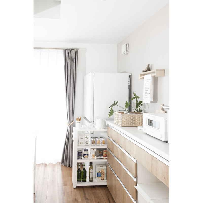 キッチンや洗面所のちょっとした隙間を収納スペースとして有効活用できるトールワゴンです。