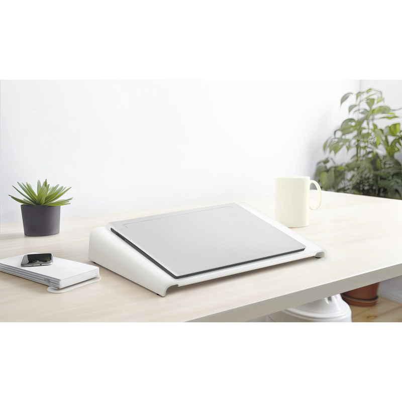 視線を上げて無理のない姿勢で作業ができるノートパソコンラックです。