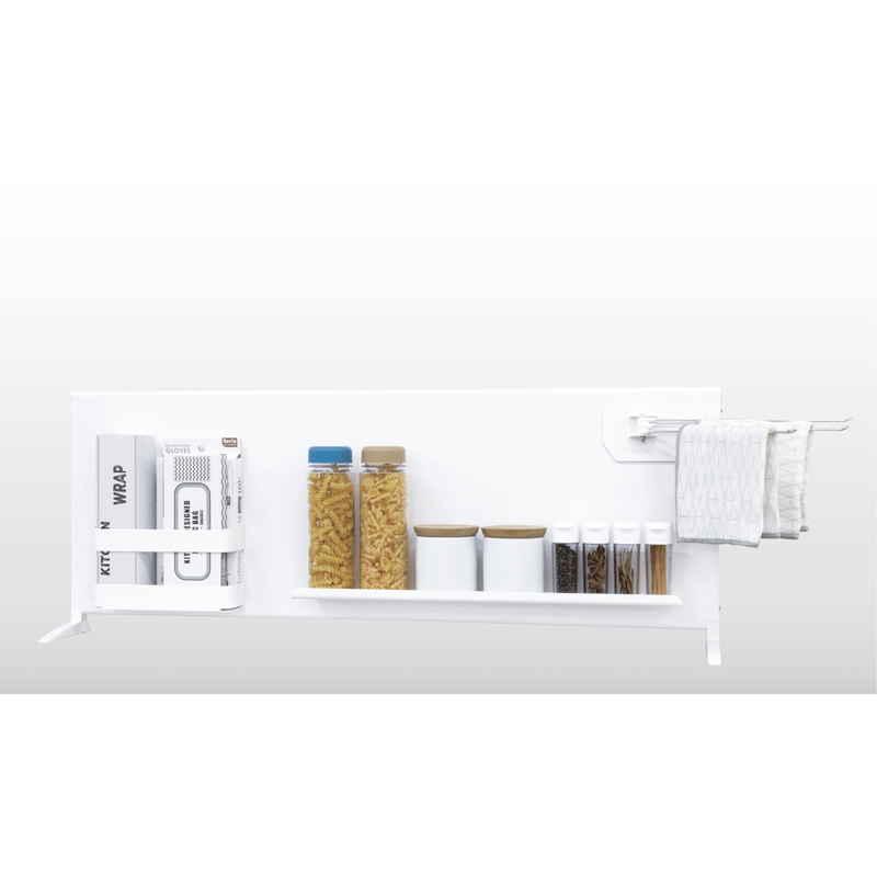 マグネットボード、ロングトレイ、幅広小物ホルダー、ふきん掛けの4点セットです。