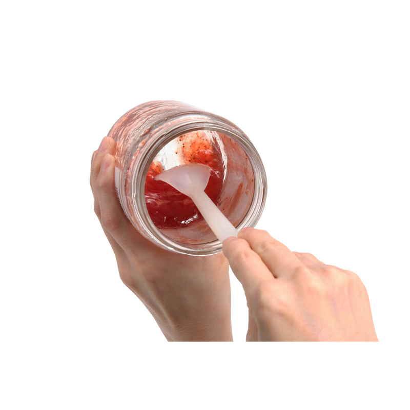 シリコーン製のスプーンが容器のカーブにフィットし、残さず綺麗に中身をすくい取ることができます。