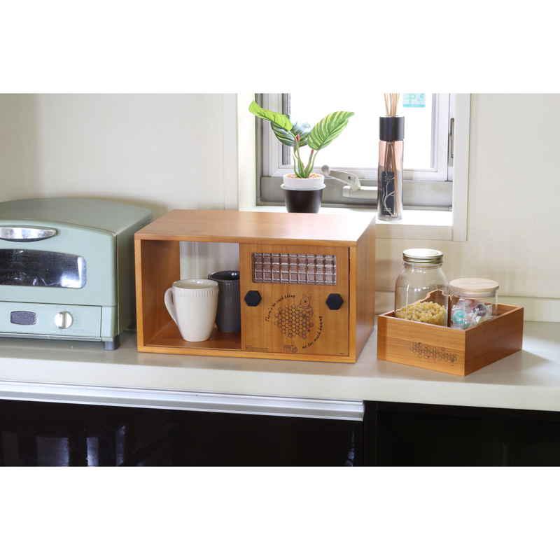 オスマック カウンター上収納 プーさんの引出し付き引き戸小物収納庫