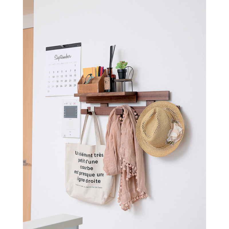オスマック 壁掛け すのこ 幅66×奥行3×高さ13cm 壁に付けられるすのこ 2段 フック 2個付き ダークブラウン