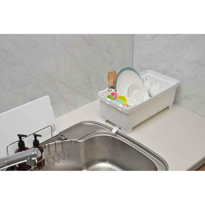 狭いキッチンスペースでコンパクトにしっかり収納 フック付き 洗えるので衛生的 お皿が立てやすい コンパクトサイズ