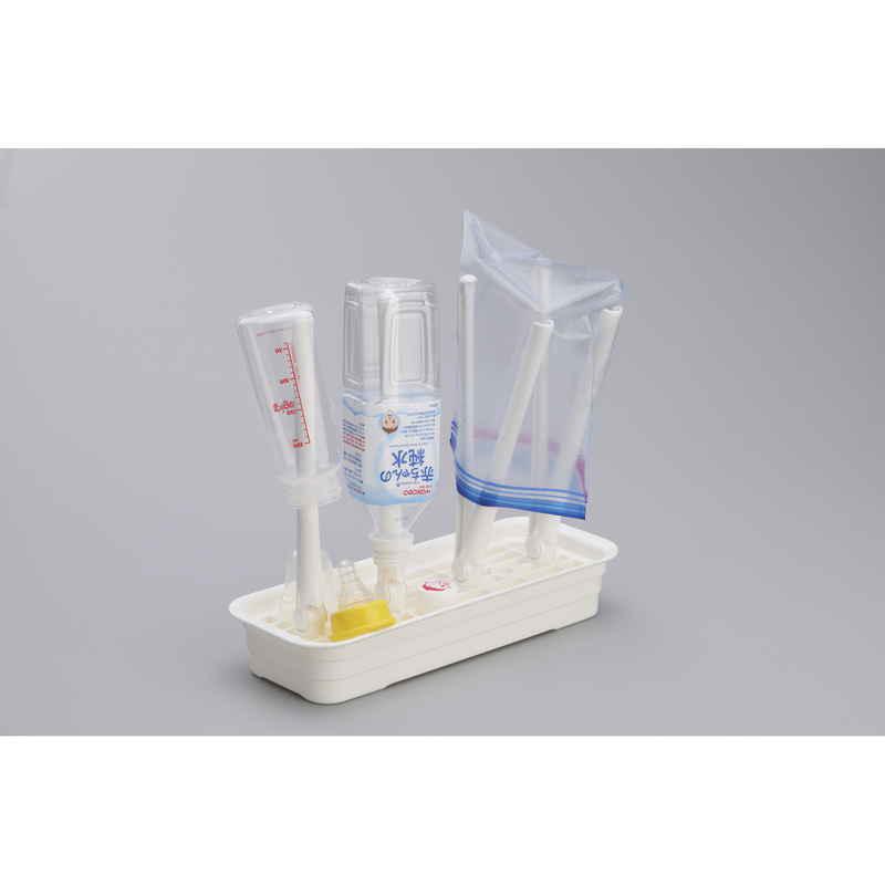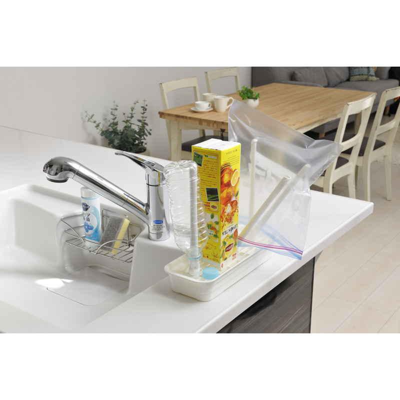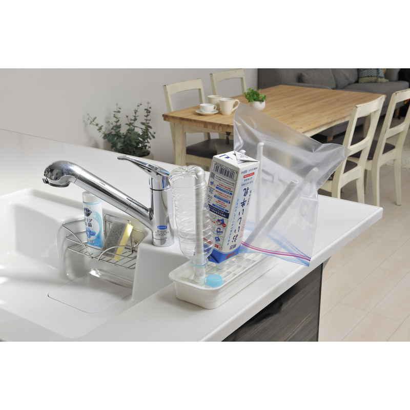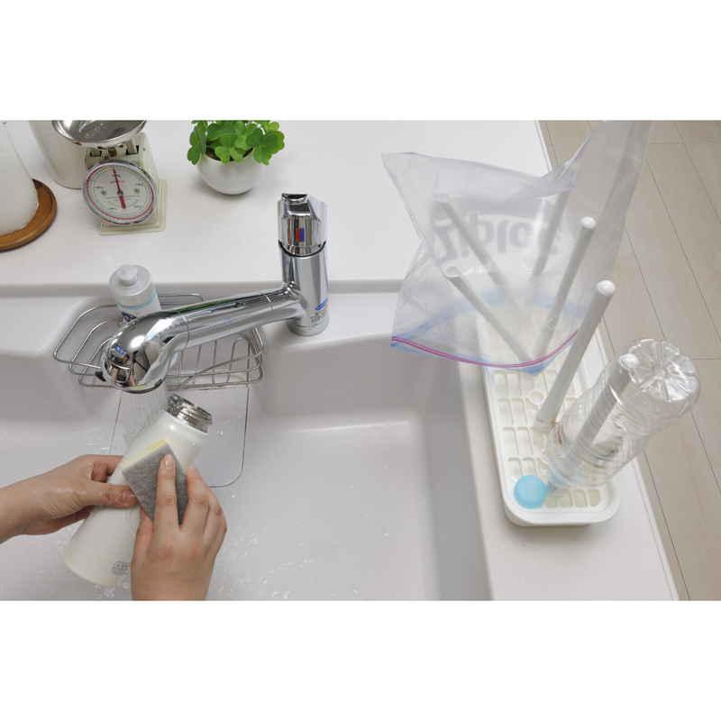 乾きにくかったペットボトルや食品保存袋、哺乳瓶などを立てて乾かせるスリムな水切りスタンドです。