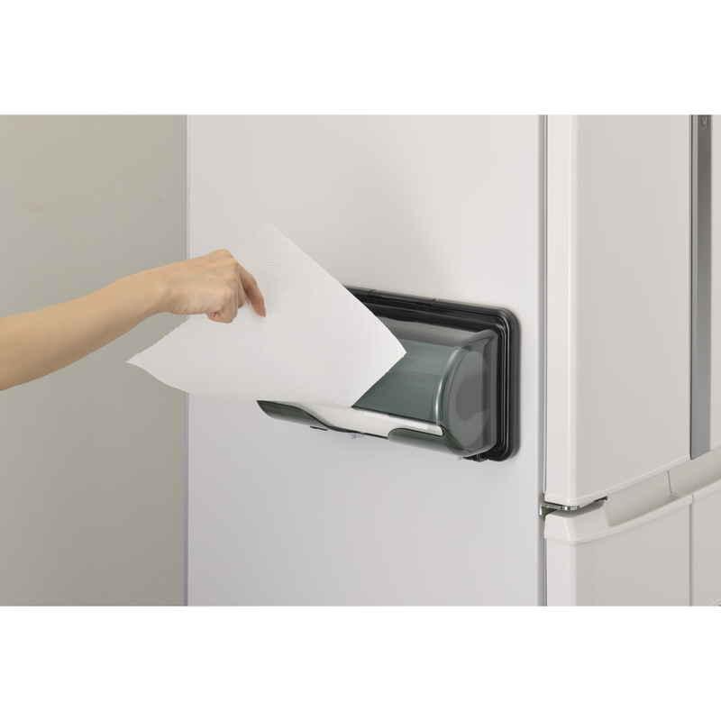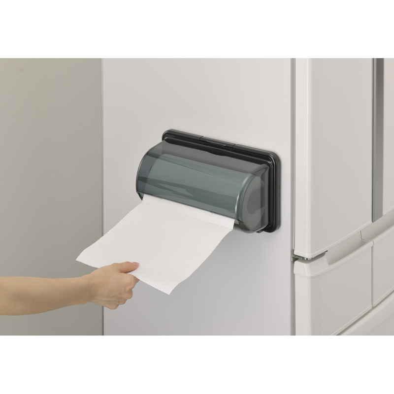 備考:耐熱温度/70度 耐荷重/500g 【使用可能なキッチンペーパーのサイズ】/ロールタイプで、幅22.5〜24.5cm、直径11.5cm以下、芯の内径3cm以上でミシン目のあるも。変形しているキッチンペーパーはできるだけ丸く整えてから、ご使用ください。 【取り付け可能な壁面】/ステンレス・スチール製品(レンジ台・キャビネットなど)金属塗装面(冷蔵庫側面など)