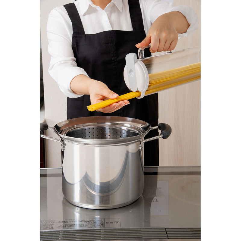 パスタを手早く計量でき、最後の1本までスムーズに出てくる便利設計です。