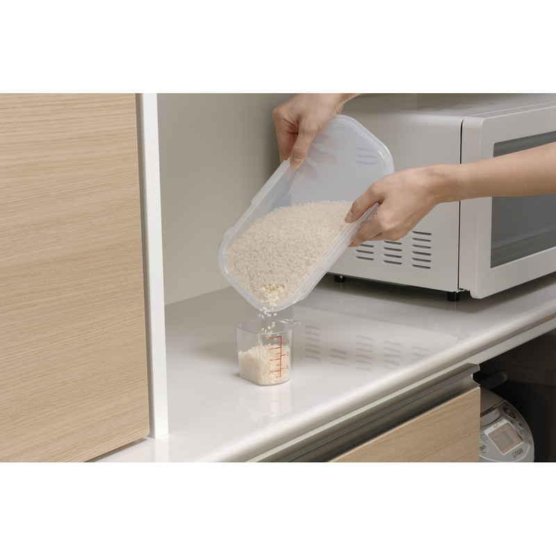 材質:本体、残米パック/ポリプロピレン 蓋/ポリエチレン 窓、ハンドル、ライスカップ/スチロール樹脂