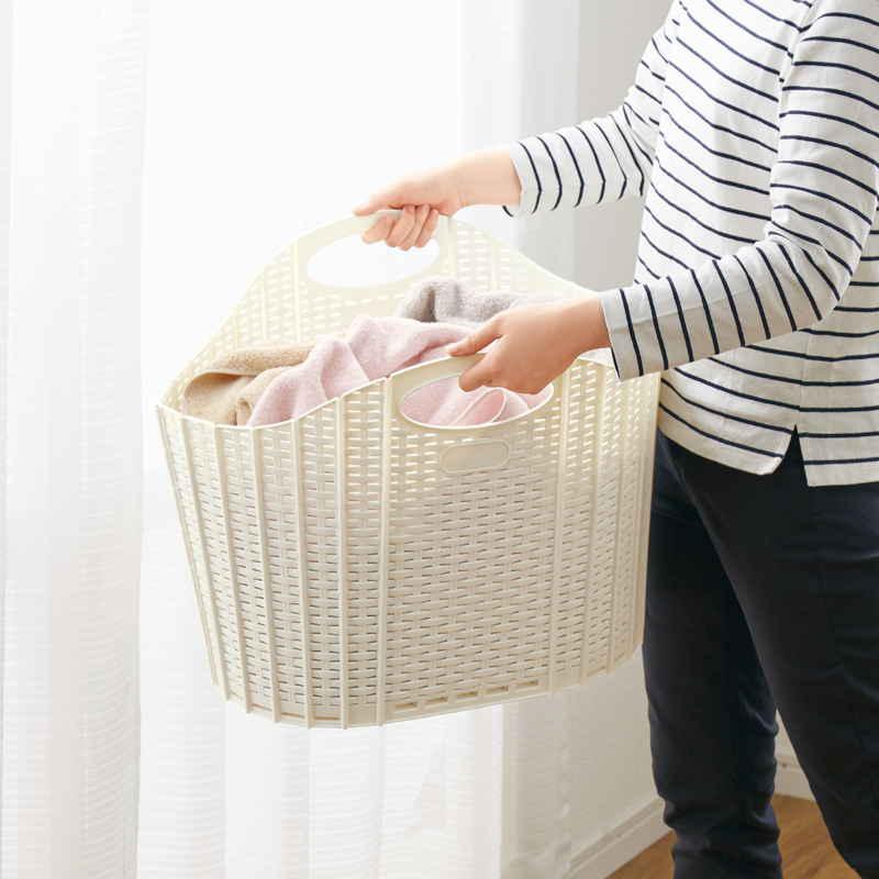 コンパクトに畳んで隙間に収納できる、大容量ランドリーバスケットです。