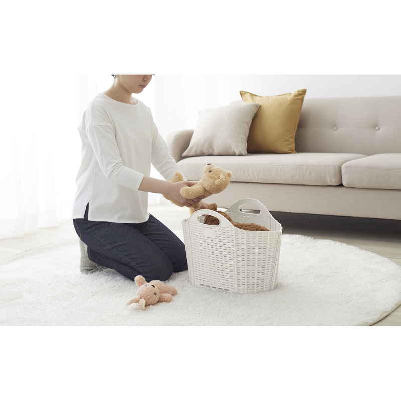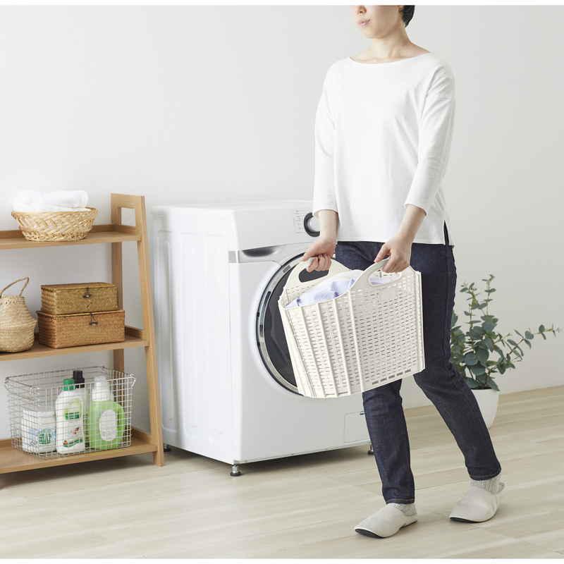 コンパクトに畳んで隙間に収納できるランドリーバスケットです。