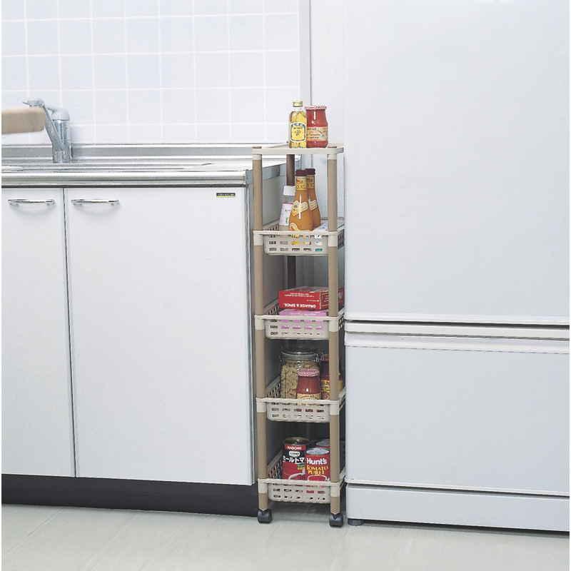 和泉化成 キッチンワゴン ロングラック 5段 アースベージュ