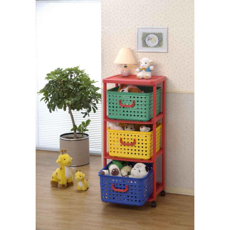 和泉化成 おもちゃ箱 幅44cm バスケットラック 3段 キャスター付き バスケット カラフル