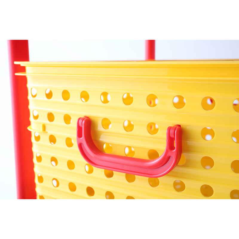 3色のカラフルなバスケットが、お子さまのお片付けの習慣付けを手助けします。