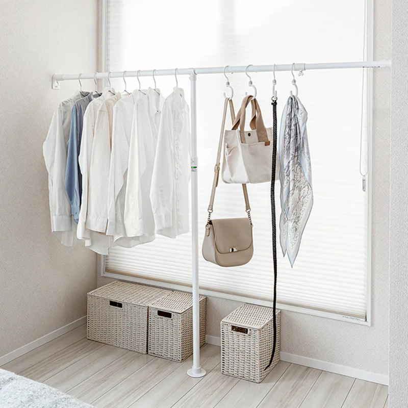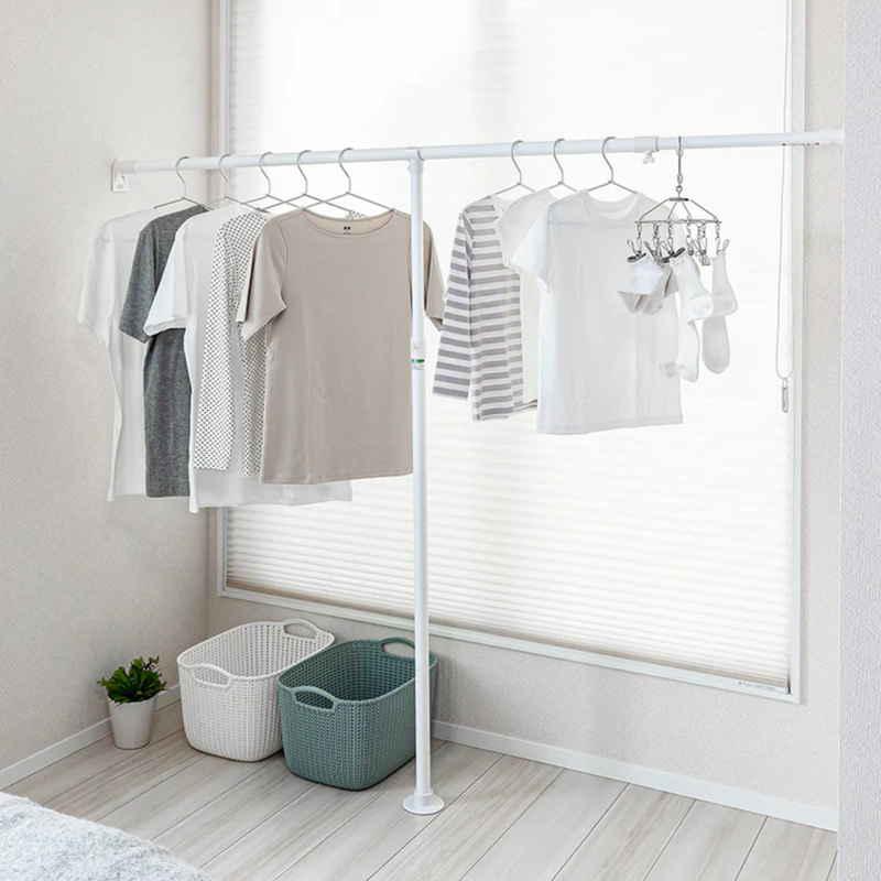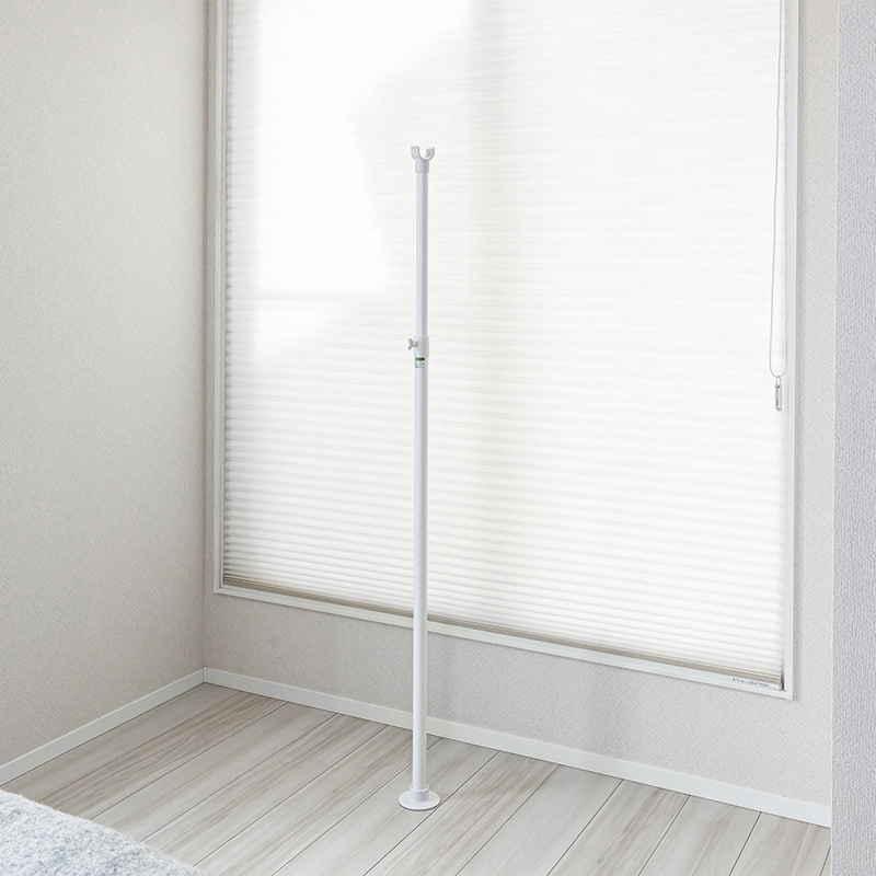 注意事項:※対応ポール径/Φ3.4(cm)まで こちらは縦方向に支える竿受け付き伸縮支柱のみの販売です ※突っ張り棒は付属しません