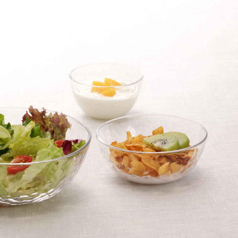 グラシューシリーズ ボウル12cm 涼しげで傷を目立たせない槌目模様 安心して使える厚み&食洗機OK お洒落に料理を引き立てるグラシューシリーズ