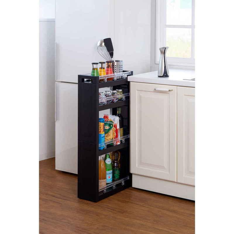 わずか17cmの隙間に調味料やドレッシングのストックなどを収納できます。