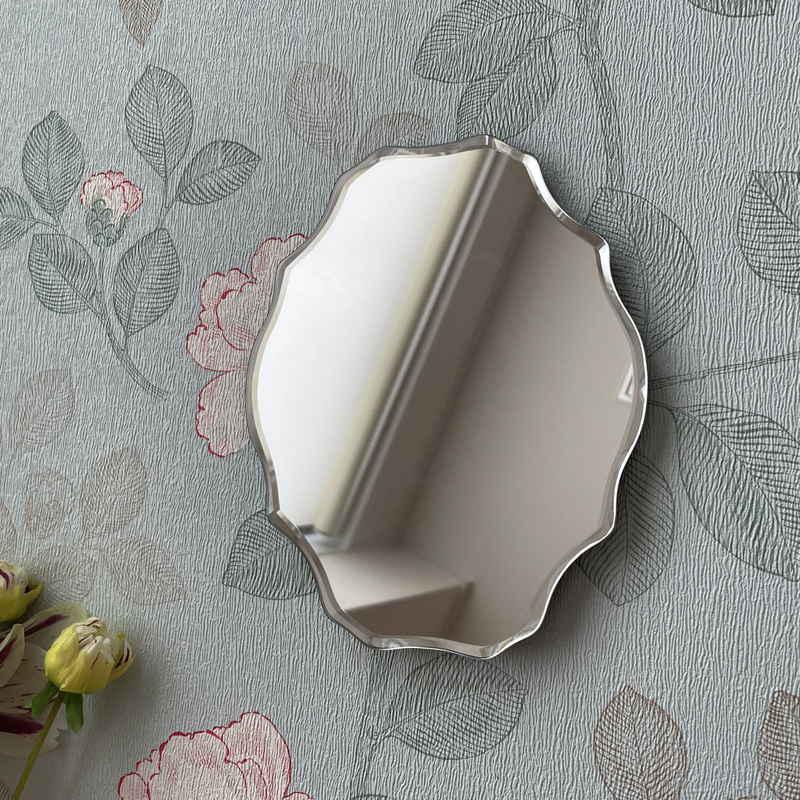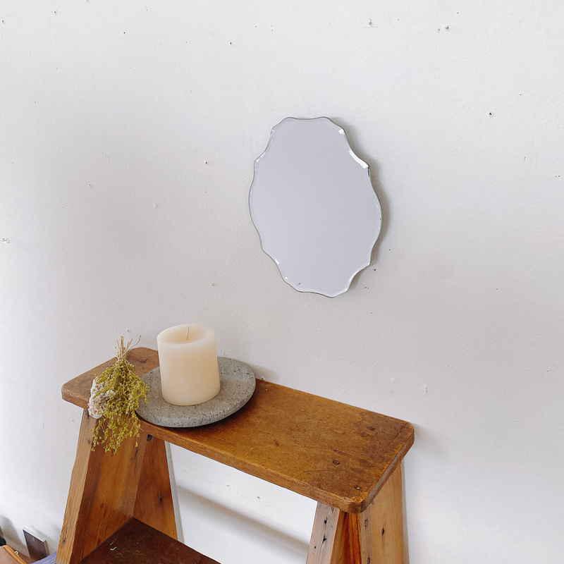 ウェーブ状の曲線が目を惹くインテリア性の高いノンフレームミラーです。