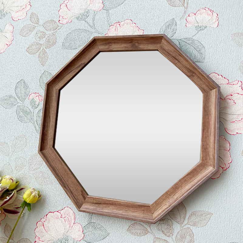 おしゃれに飾れる開運八角ミラー L 色んなシーンで活躍するシンプルデザイン ウォールミラーとして使える適度な大きさ 壁掛け用フック ナチュラルフレーム