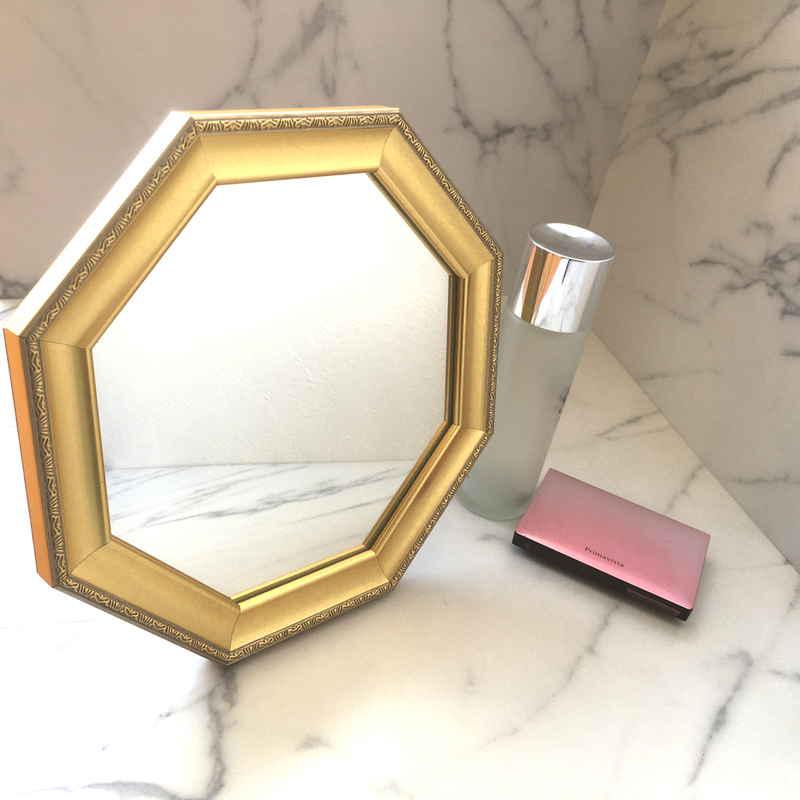 おしゃれに飾れる開運八角ミラー M 卓上、壁掛けどちらでも使える2WAYタイプ 色んなシーンで活躍するシンプルデザイン 使い勝手の良いサイズ感 無段階角度調節スタンド