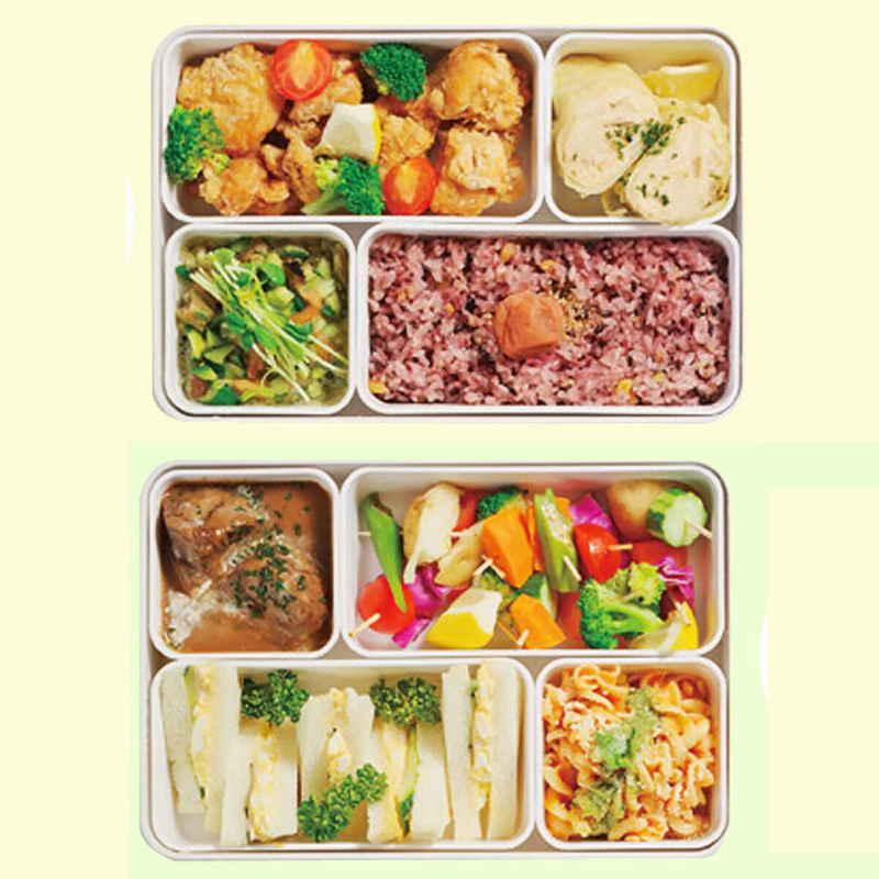 おうちランチがおしゃれにグレードアップ 容量1.4Lの特大お弁当箱として 4つの中子付きで盛り付けやすい 中子は電子レンジOK かさばらないデザイン