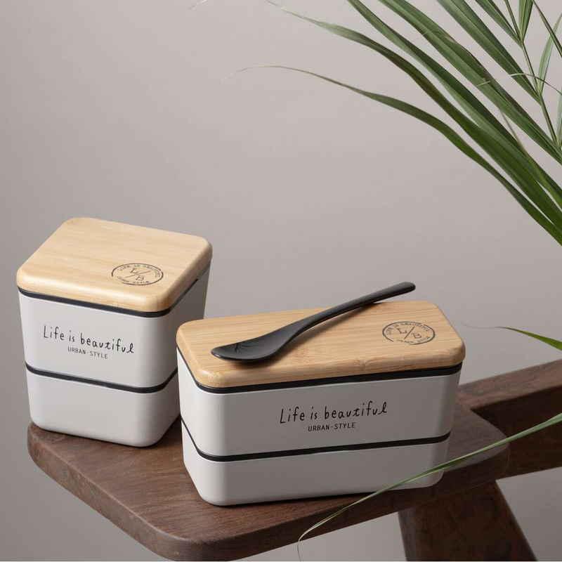 モノトーンカラーに竹製の蓋を合わせた、都会的な中にもナチュラルなテイストを織り込んだLife is beautifulランチシリーズの2段弁当箱です。