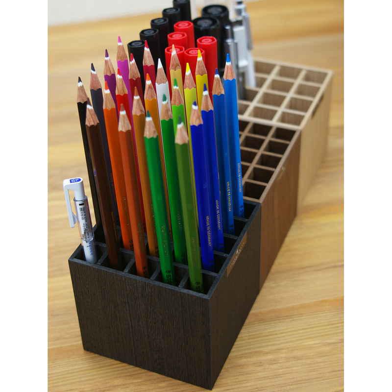 デスクに散らかるペンを徹底収納できるペンスタンドです。