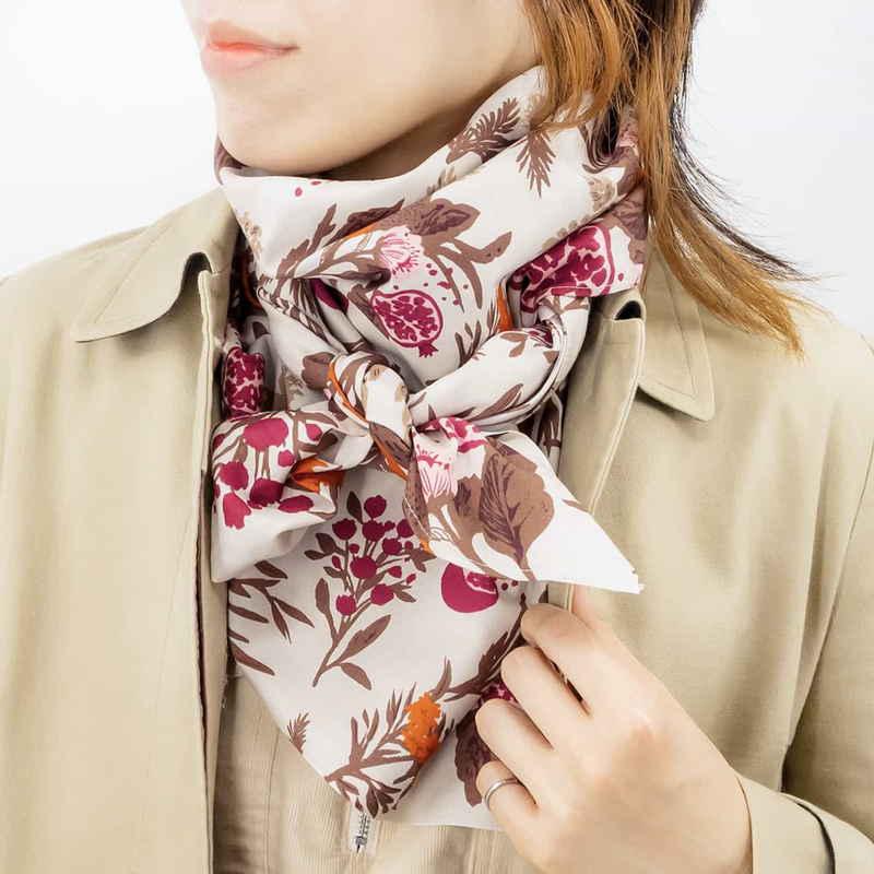 柔らかく肌触りや通気性の良さに優れているので、スカーフやショールなどの身に着けるものにもおすすめです。