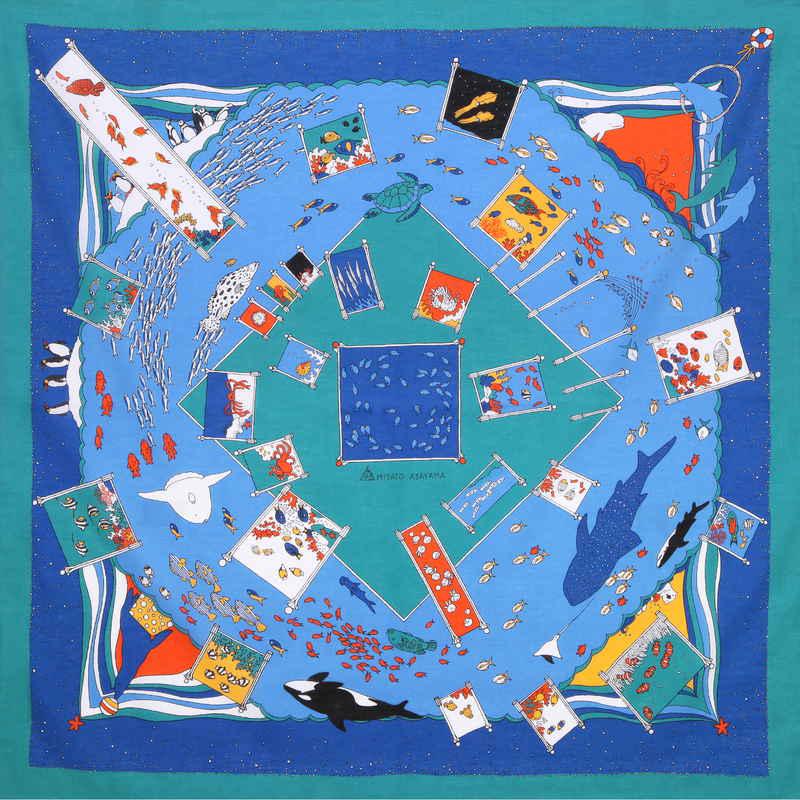 三陽商事 浅山美里綿二巾ふろしき 水族館