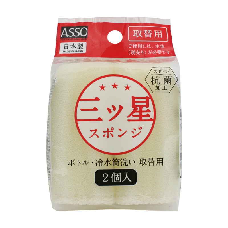 ワイズ ボトル洗い ASSO 三ツ星スポンジ ボトル冷水筒洗い取替用 2個入