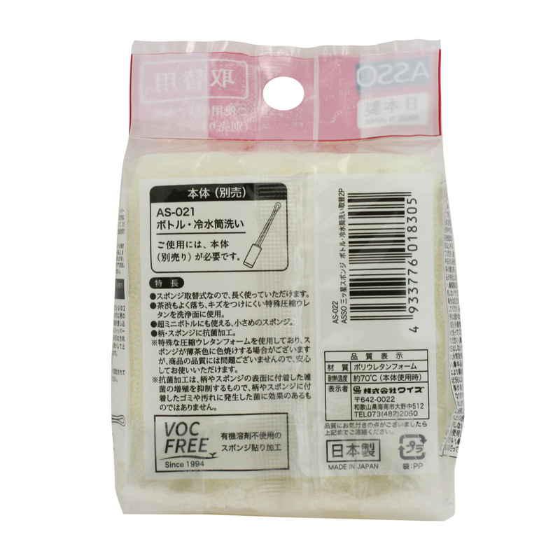 超ミニボトルも洗える、小さめのボトル洗いの専用替えスポンジ2個入りです。