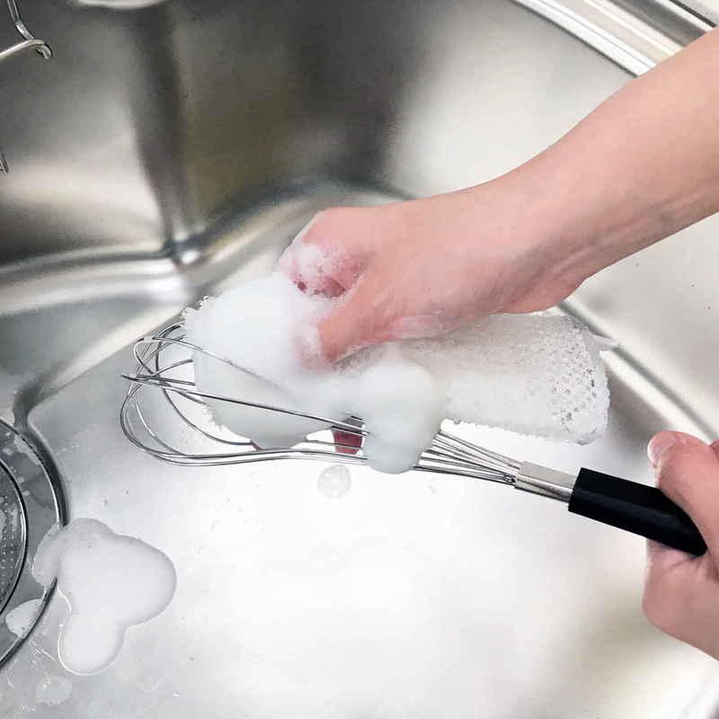 クロスタイプなので形が自由になり、食器やコップ類の他、プラスチック容器のスミや細かな部分までしっかり洗えます。