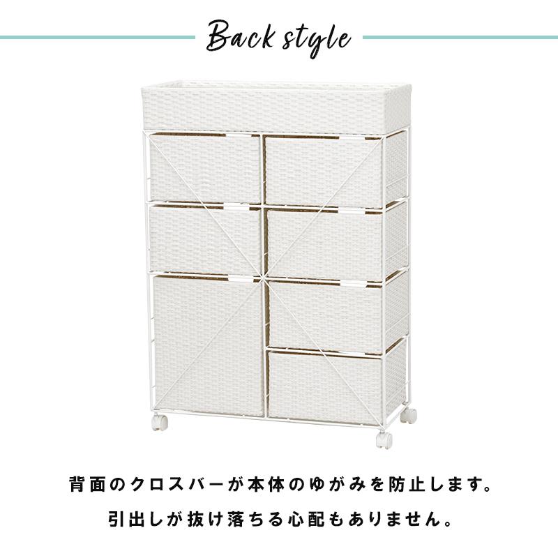 萩原 ランドリー RAN-2418WH ホワイト 収納 サニタリー 衣類収納 引出 ラタン調 大容量 キャスター付