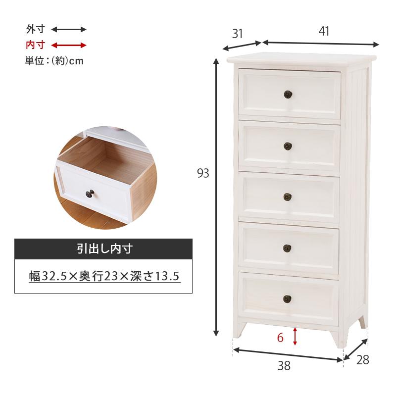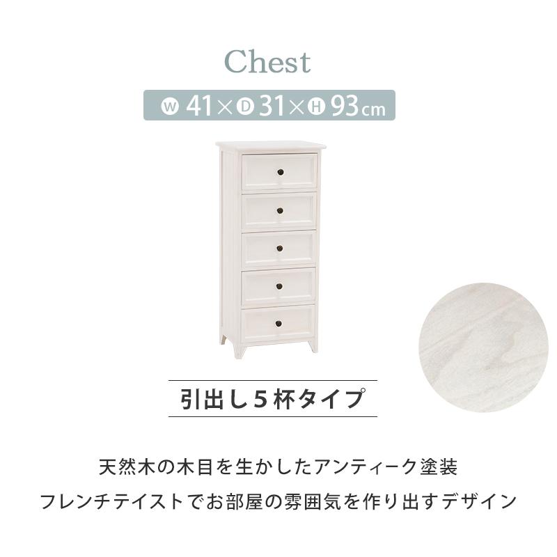 萩原 チェスト MCH-5385AW アンテークホワイト 衣類収納 フレンチアンティーク 木製 5段